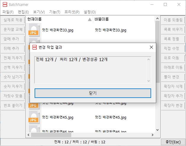 - 처리결과 화면이 나오네요. 전체 12개 중에 12개 모두 변경에 성공했다고 합니다. 짝짝~~