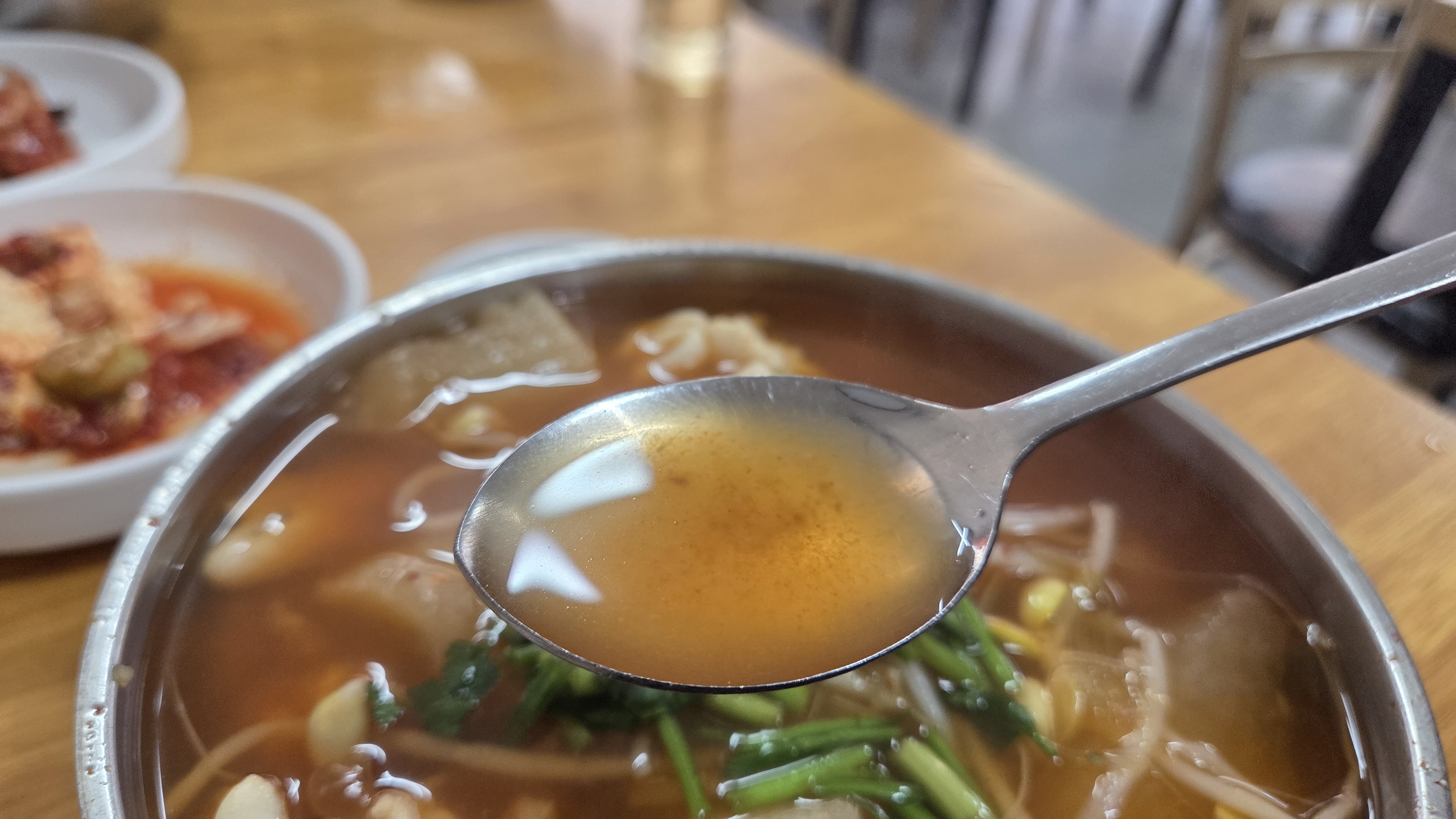 국물은 아주 시원한 말 그대로 해장용이예요.. 먹을 수록 게속 당기는 맛이죠.. 간은 살짝 센 편이지만, 비린 내 없이 원샷 할 수 있는 맛입니다.^^ 보기 보다 맵지 않았는데, 제 기준으론 조금 더 매웠으면 하는 생각도 들더라구요.
