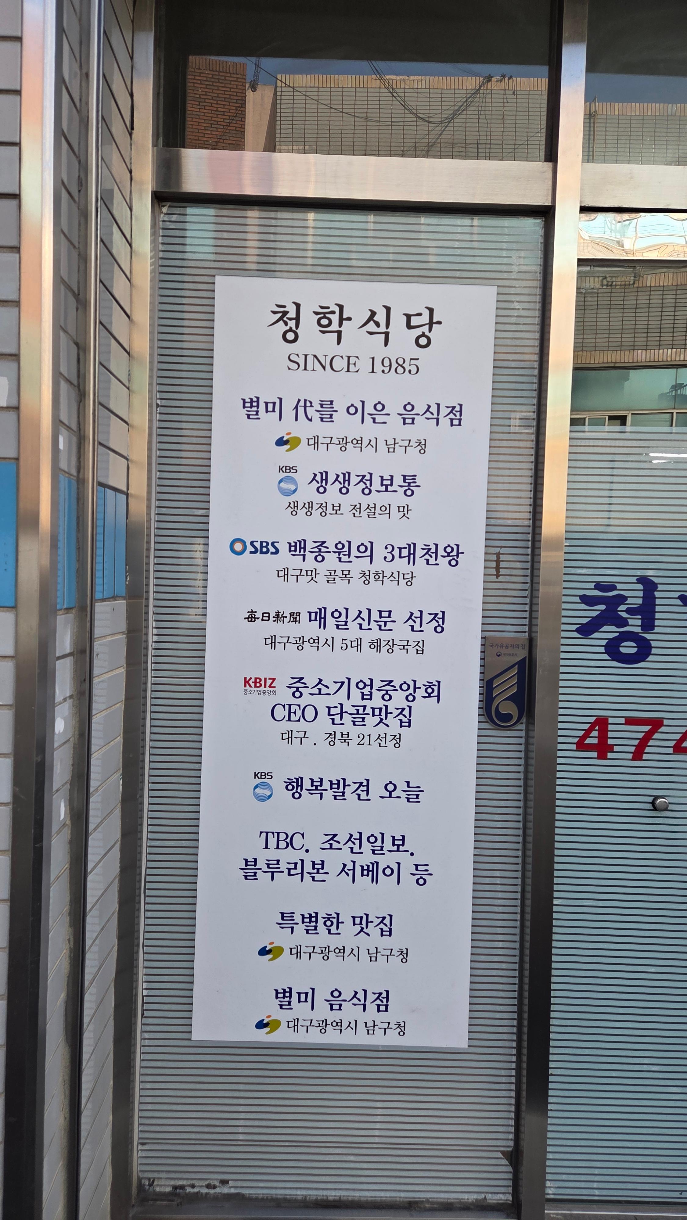 청학식당은 1983년부터 영업을 한 노포식당으로 올해로 44년째가 되겠네요.. 오랫동안 맛집으로 이름만 곳이라 지금까지도 이렇게 성업을 하고 계시는 것이겠죠.. 각종 매체에도 자주 다녀간 곳입니다. 특별한 맛집, 별미음식점, 안심식당 등등.. 다양한 인증을 받은 것도 좋네요..