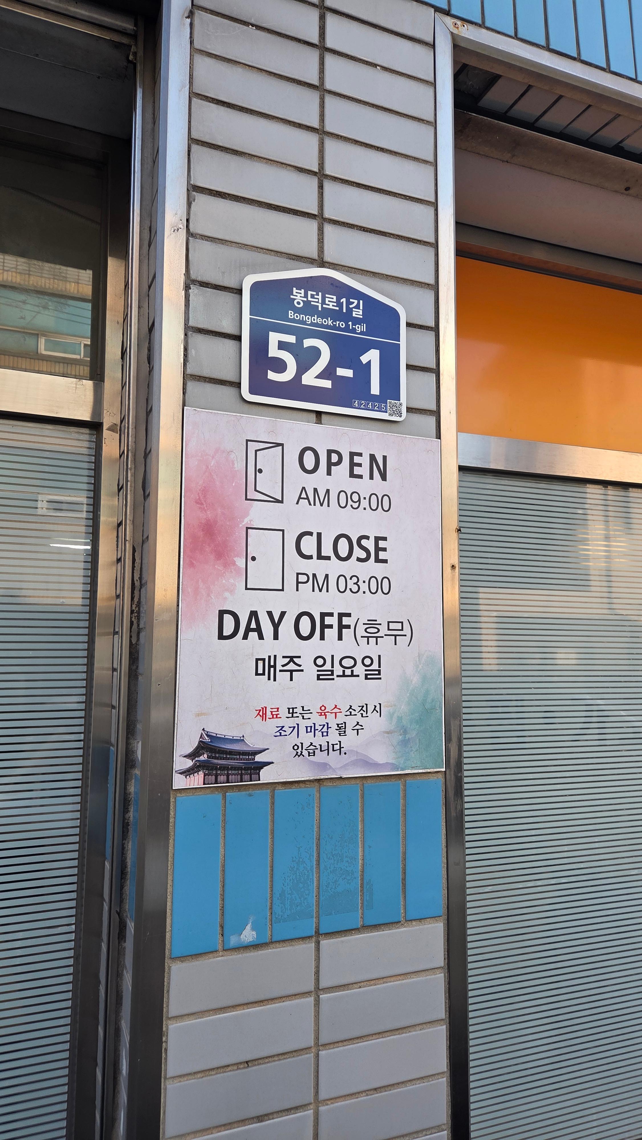 영업시간 : 오전 9시부터 오후 3시까지(매주 일요일 정기휴일)